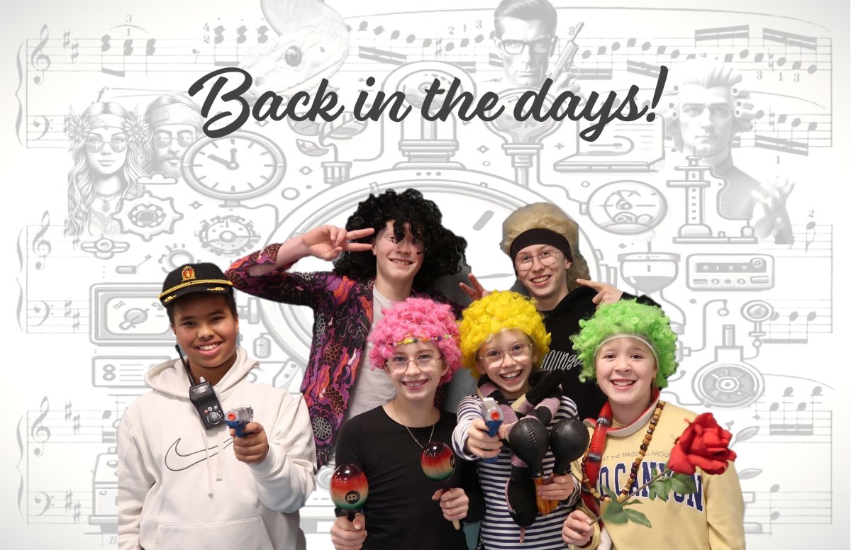 Gjennom musikk og sketsjer dro vi på tidsreise og lagde en godterirobot.