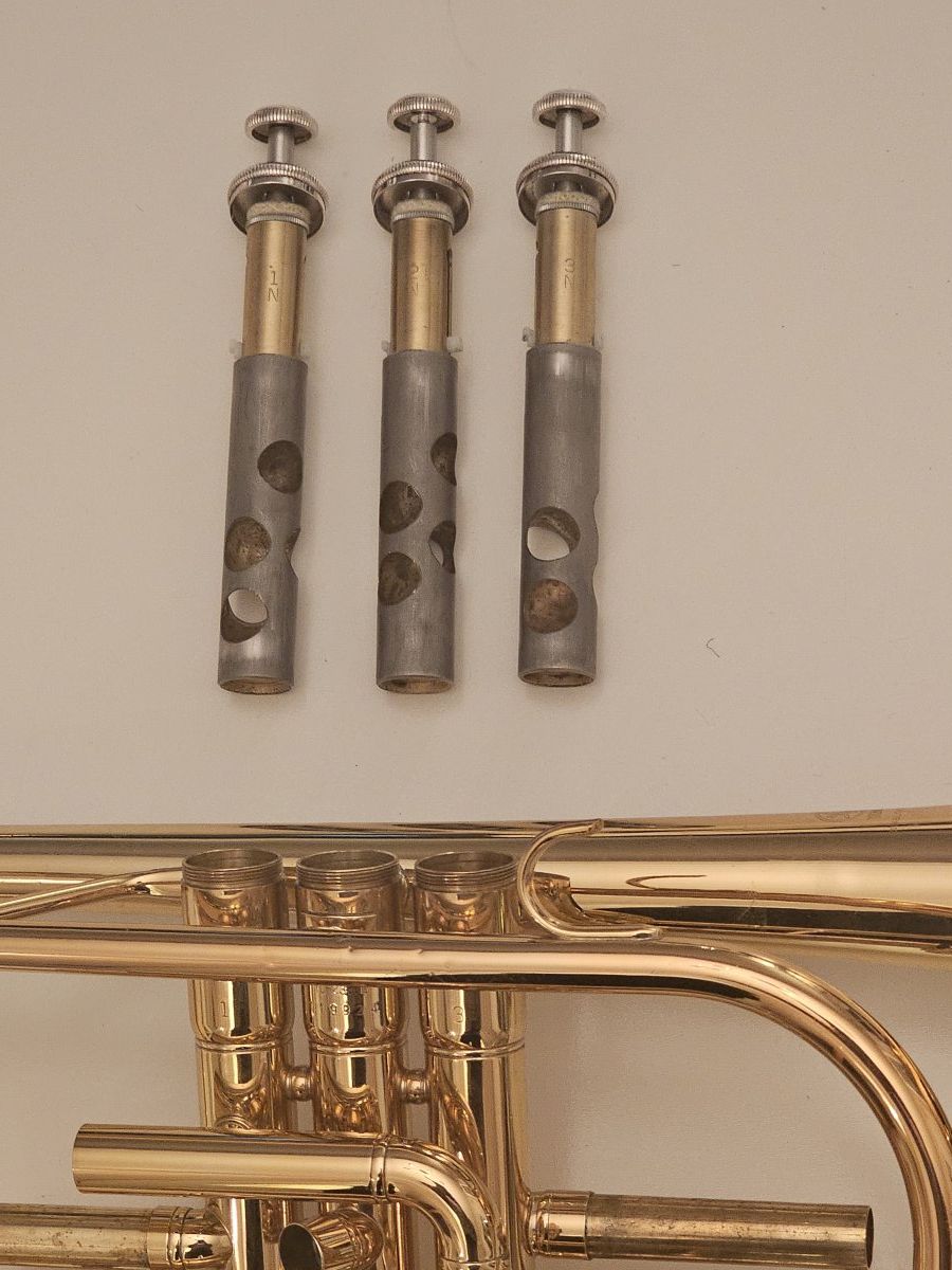 - Pass på hvilken retning ventilene er. Hvis du holder instrumentet med munnstykke mot deg, ser du tallene på ventilene, før de går ned i hullet. Du hører et lite klikk også når ventilen går riktig ned.